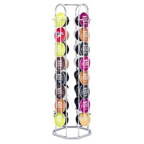 Porta Capsulas Modelo Torre Compatível Dolce Gusto Tomar um café podendo escolher entre vários sabores é sensacional, desde que você encontre o sabor que quer. Pra isso, nada melhor do que um Porta Cápsulas para organizar os sabores do seu café. Compatível com o Café Dolce Gusto, esse suporte tem acabamento cromado e espaço total para 32 cápsulas. Base fixa com quatro lados, ou seja, cabem 08 cápsulas em cada lado, fica ainda mais fácil de organizar. Você pode organizar cada lado com um sabor diferente do seu café. Produzido em aço carbono Acabamento cromado de alto brilho Para limpeza, não utilize produtos abrasivos para não riscar o acabamento. Medidas do Porta Cápsulas Cromado 32un Dolce Gusto: Comprimento: 13cm Largura: 13cm Altura: 47cm Ean: 7010615536422