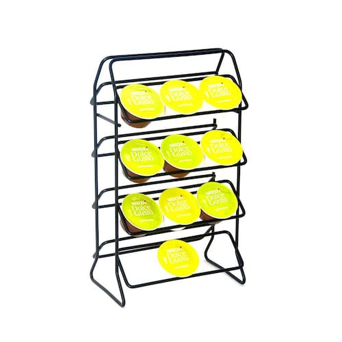 Suporte Porta Cápsulas Dolce Gusto Due Lati Jomer 2426 - Preto - Organiza suas cápsulas - Uso apoiado em Bancada - Compatível com cápsulas Dolce Gusto - Funcionalidade e organização, inclusive, para ambientes de área reduzida. - Praticidade, design e sofisticação. - Versatilidade e Bom Gosto para o seu dia-a-dia. Material: Aço Medidas: 170 x 300 x 125mm (L x A x P) Garantia de 03 anos Fabricante: Aramados Jomer * Foto meramente ilustrativa. As cápsulas não acompanham o Suporte.