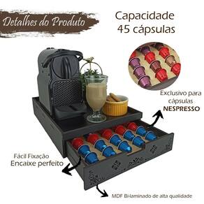 Capacidade para 45 cápsulas Nespresso OBS: Cápsulas e acessórios não acompanham o produto