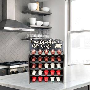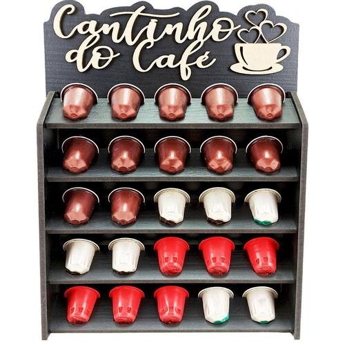Porta Capsulas Nespresso Suporte Cápsulas Cantinho do Café P Nada como tomar aquele café expresso feito na hora é E ainda mais poder escolher de forma prática seu sabor predileto, já pensou Trazemos aqui para você nosso exclusivo e moderno porta cápsulas para cafeteira NESPRESSO. Um produto para quem gosta de organização e praticidade, pois com ele você organiza suas cápsulas e ainda por cima decora seu cantinho do café, deixando-o ainda mais agradável Uma peça com design moderno feita em MDF bi-laminado da Altíssima Qualidade e acabamento impecável. As frases confeccionadas neste porta cápsulas são feitas em alto relevo com corte a laser, que faz com que a peça tenha um requinte especial e diferenciado no mercado. Compre já o seu ESPECIFICAÇÕES: Marca: Facris Material: MDF bi-laminadoQuantidade: 25 cápsulas Altura: 38cmLargura: 26cmProfundidade: 6cmPeso: 1000gr. IDEAL PARA: Uso domésticoCafeteriasComplementos de copa/cozinha BaresHotéisRestaurantesPadarias Obs.: Cápsulas de café não inclusas.