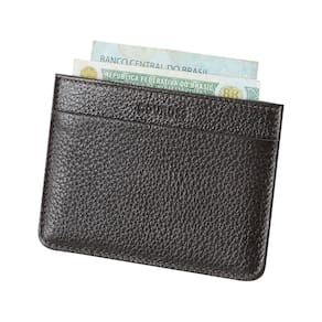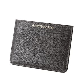 Estrutura do corpo: Construção em couro macio de espessura média e toque macio. Forro misto de poliéster e alumínio com blindagem de leitura Rfid. Logomarca prensada em relevo. Dimensões: 10,5 x 08 x 01 cm largura x altura x espessura Peso aproximado: 20 gramas Material: couro