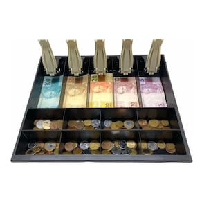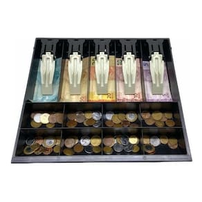 Porta Cédulas Caixa Dinheiro Gaveta Menno Prendedor Plástico Fabricada em poliestileno de alta resistência o porta cédulas e moedas Menno MG40 pode ser utilizadas em gaveta Menno MG 40 e também é compatível com outros fabricantes se as dimensões forem iguais. Podem ser utilizadas em qualquer estabelecimento comercial como lojas, bancos, checkout de supermercados entre outros.Caracteristicas:- Cor: Preta- Produzido em poliestileno de alto impacto- Com prendedores de cédulas de plástico - Preparado para as novas cédulas - Divisórias: 5 para cédulas e 8 para moedas- Dimensões: 56mm x 314mm x 351mm- Peso: 0,655 Kg Marca: Não Informado Ean: 7897075816840