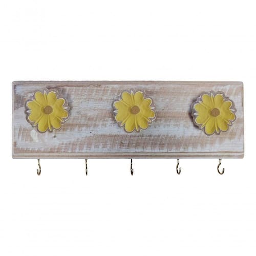 Com 5 ganchos, este porta-chaves mantém suas chaves organizadas de forma elegante. As opções de cores para as flores permitem personalização única