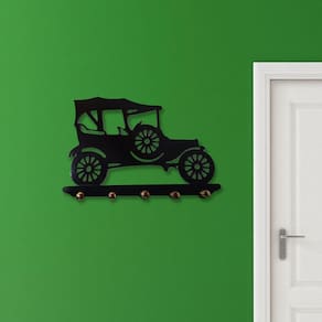 Decore sua casa ou presenteie seus amigos. Lindo Porta Chaves Fabricado com Mdf de 1a. qualidade sua pintura é a mesma utilizada em automóveis com aplicação de primer, lixamento e aplicação de tinta Laca automotiva na cor clássica preto Cadillac com acabamento acetinado. MDF de 3 mm e 6mm na base do suporte dos pinos. Produto resistente, leve e de fácil instalação. Especificações Técnicas: Medidas: comprimento: 22 cm altura: 2 cm largura: 16 cm Material: mdf 3mm Cor: preto Tema: carro antigo Formas de instalação: basta utilizar fitas dupla face Quantidade: 1 unidade Características específicas: pinos dourados com acabamento