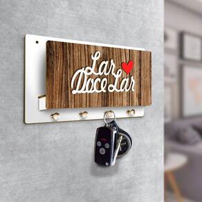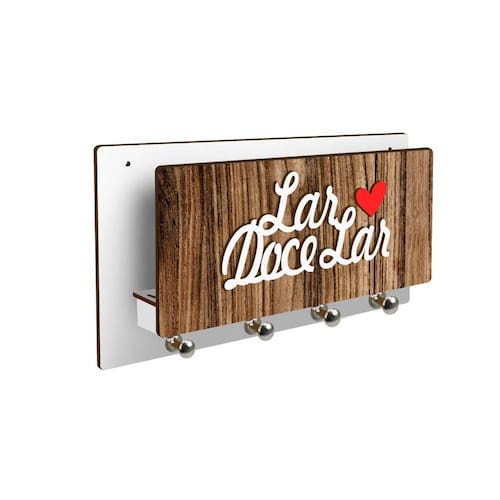 Porta Chaves Com Porta Cartas Lar Doce Lar Em Mdf COR: BRANCO Com nossos porta chaves e cartas, você conta com 4 pinos para pendurar suas chaves e um espaço de 35mm para as correspondências. Produzido nas medidas 22x12x4cm, com MDF de 3mm, pinos prateados, apliques e gravações a laser. Possui recortes no verso da peça para que você possa pendurá-lo. Sugerimos utilizar parafusos e buchas itens não inclusos . Não nos responsabilizamos pelo uso de fitas dupla-face devido ao peso do produto e das chaves. Limpe sempre com espanador e pano seco e macio. Garantia de 90 dias por defeitos de fabricação. Marca: Spezialle