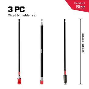 IMPORTANTE: Se for um produto elétrico, ele pode ser compatível com uma tomada de 110 volts. Se utilizado fora dos Estados Unidos, pode ser necessário um conversor de voltagem para garantir a operação adequada. Verifique se o produto que você está comprando é elétrico antes de considerar essas informações. Comprimento misto de porta-brocas de chave de fenda : 12 polegadas (300 mm) Tamanho hexagonal: 1/4" Quantidade: 3 peças Uso: chaves de fenda elétricas de ajuste universal, chaves de fenda manuais, chaves de fenda de 1/4" com alça em T, furadeiras com fio, furadeiras sem fio, furadeiras elétricas, chaves de impacto ou quaisquer outros dispositivos com haste hexagonal de 1/4 de polegada. Usos ilimitados em automóveis, hardware, hobby, casa, etc. - 3 peças de porta-brocas, suporte de broca de 12 polegadas (300 mm) de conexão - FORTE MAGNÉTICO,O ímã está localizado dentro do tubo, mantém as brocas no lugar, reduz a possibilidade de oscilação ou queda, garante a precisão de sua furadeira elétrica ou de outros dispositivos - Alta precisão, este eixo de broca de extensão é muito reto e quase não oscila quando você o usa com chave de fenda de impacto - estenda a área das brocas, haste hexagonal de 1/4” e 12 polegadas de comprimento, perfeita para locais apertados e difíceis de Parafusos de alcance — Amplamente utilizado, suporte de broca com soquete de extensão magnética, chaves de fenda elétricas de ajuste universal, chaves de fenda manuais, chaves de fenda de 1/4" com alça em T, furadeiras com fio, furadeiras sem fio, furadeiras elétricas, chaves de impacto ou quaisquer outros dispositivos com haste hexagonal de 1/4 de polegada. Usos ilimitados em automóveis, hardware, hobby, casa, etc