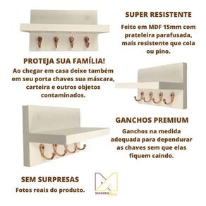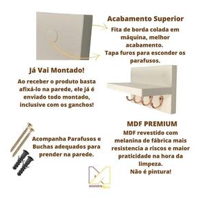 Esse lindo organizador de chaves serve pra você que não suporta ver as chaves, carteira e outros objetos espalhados pela casa a fora, ou ainda, que não aguenta mais na hora de sair perder um tempão procurando as chaves. Além de um organizador nosso porta chaves é um item decorativo. Fica lindo em qualquer lugar. Com uma prateleira embutida pode ser decorado com plantas, mini estatuetas, fotos e muito mais. Nosso porta chaves tem 4 ganchos em metal e uma prateleira. Caso tenha interesse temos um modelo maior de 6 ganchos basta clicar em Mais Anúncios do Vededor abaixo das fotos do produto. Produzido em MDF, revestido com melanina de fábrica, nosso chaveiro prateleira é ecologicamente correto. Cuide da sua casa e ao mesmo tempo da natureza Nossos produtos em MDF são qualidade premium, com fitas de borda coladas em máquina trazem melhor qualidade e acabamento que as fitas coladas manualmente. ACOMPANHA: 1 Porta Chaves em MDF com 4 ganchos. 2 Parafusos 2 Buchas n8 MEDIDAS Largura: 18cm Altura: 11cm Profundidade: 9,5cm 1 Vem Montado Acompanha Buchas e Parafusos Sim. Esse item já vai montado. Sim acompanha buchas e parafusos. Basta afixá-lo na parede e começar a usar. MODERNA ARTE Nossa empresa com 10 anos de mercado tem buscado cada vez mais oferecer uma boa experiência de compra para nossos amigos e clientes. Como consequência temos uma excelente reputação na plataforma. Nós da Moderna Arte acreditamos que uma casa bem decorada se torna um verdadeiro lar, um refúgio para os que amamos. Por isso, investimos em máquinas de última geração e muito carinho e atenção na confecção de cada peça em nossa fábrica. Ainda tem alguma dúvida Utilize o campo de perguntas logo abaixo. Estamos sempre a disposição e como fabricantes entendemos bem de nossos produtos e podemos sanar qualquer dúvida. do vendedor: 90 dias Marca: Não Informado Ean: 79071293416038