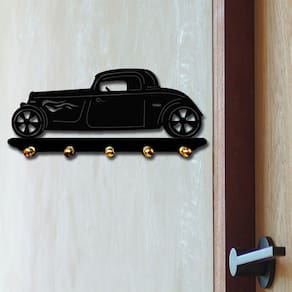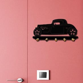 Decore sua casa ou presenteie seus amigos. Lindo Porta Chaves Fabricado com Mdf de 1a. qualidade sua pintura é a mesma utilizada em automóveis com aplicação de primer, lixamento e aplicação de tinta Laca automotiva na cor clássica preto Cadillac com acabamento acetinado. MDF de 3 mm e 6mm na base do suporte dos pinos. Produto resistente, leve e de fácil instalação. Especificações Técnicas: Medidas: comprimento: 22 cm altura: 2 cm largura: 10 cm Material: mdf 3mm Cor: preto Tema: carro Formas de instalação: basta utilizar fitas dupla face Quantidade: 1 unidade Características específicas: pinos dourados com acabamento