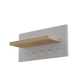 Porta Chaves Minimalista de Parede com 5 pinos Branco e Carvalho