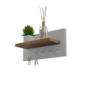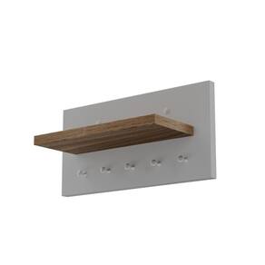 Porta Chaves Minimalista de Parede com 5 pinos Branco e Freijo