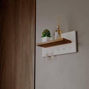 Produzido em madeira MDP de 15mm na cor branco com freijo, adapta-se facilmente a diferentes estilos de decoração. Acompanha 2 parafusos e buchas para fixação na parede. Caso prefira não furar, é possível instalar utilizando fita dupla face (não inclusa).