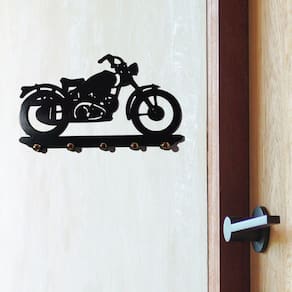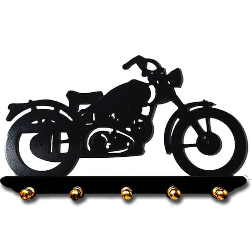 Decore sua casa ou presenteie seus amigos. Lindo Porta Chaves Fabricado com Mdf de 1a. qualidade sua pintura é a mesma utilizada em automóveis com aplicação de primer, lixamento e aplicação de tinta Laca automotiva na cor clássica preto Cadillac com acabamento acetinado. MDF de 3 mm e 6mm na base do suporte dos pinos. Produto resistente, leve e de fácil instalação. Especificações Técnicas: Medidas: comprimento: 24 cm altura: 2 cm largura: 15 cm Material: mdf 3mm Cor: preto Tema: moto Formas de instalação: basta utilizar fitas dupla face Quantidade: 1 unidade Características específicas: pinos dourados com acabamento