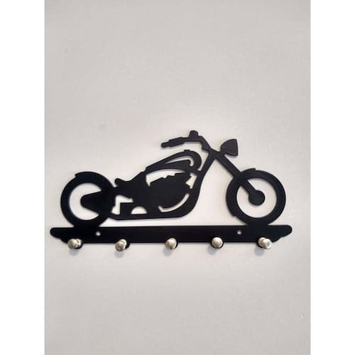 Decore sua casa ou presenteie seus amigos. Lindo Porta Chaves Fabricado com Mdf de 1a. qualidade sua pintura é a mesma utilizada em automóveis com aplicação de primer, lixamento e aplicação de tinta Laca automotiva na cor clássica preto Cadillac com acabamento acetinado. MDF de 3 mm e 6mm na base do suporte dos pinos. Produto resistente, leve e de fácil instalação. Especificações Técnicas: Medidas: comprimento: 26 cm altura: 2 cm largura: 13 cm Material: mdf 3mm Cor: preto Tema: aventura Formas de instalação: basta utilizar fitas dupla face Quantidade: 1 unidade Características específicas: pinos dourados com acabamento