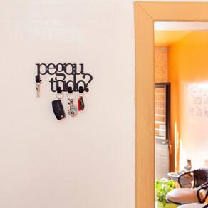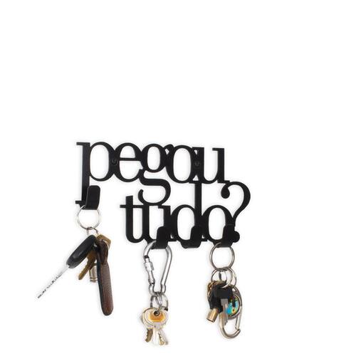 Um produto super útil para ajudar na organização ao mesmo tempo que traz um toque divertido para decoração. Feito em chapa de aço com a frase pegou tudo? trazendo um toque descontraído para sua parede. Perfeito para organizar bolsas, chaves e os mais variados acessórios.