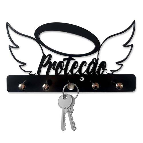 Porta Chaves Proteção Decoração Criativa Cor: Preto O Porta Chaves Proteção é excelente para uma decoração criativa, divertida e para que nunca nos falte a proteção em nosso lar. Criatividade até na hora de organizar as suas chaves. Características: Possui 5 pinos para chaves. Dimensões: 19,512,5 cm Material: feito de PSI 2mm, material semelhante a acrílico, cortado a laser, adesivado especial Conservação: Pano macio úmido com água e sabão neutro Fixação: Adesivo dupla face para aplicação em qualquer tipo de superfície lisa. Acompanha fita dupla face para fixação à parede. Marca: Geek Vip Ean: 7898711272761
