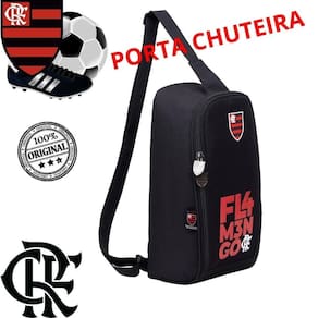 Porta chuteira 12047 - confeccionada em poliéster resistente - brasão rubro-negro oficial emborrachado - arte exterior em silk - zíper com puxadores personalizados - alça tiracolo com regulagem - dimensões: 33cm x 18cm x 15cm - peso 0,300 g - litros 9