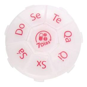 Porta ComprimidosOrganize seus medicamentos de forma pratica e higiênica. Todos em um lugar só para facilitar e evitar esquecer de tomar a medicaçãoPreço por UnidadeCaracterísticas• Material: Plástico• Medidas: 2,5 cm (Altura) x 8,5 cm (Largura) x 8,5 cm (Comprimento)• Medidas de cada compartimento: 2,3 cm (Altura) x 1,5 cm ( Largura) x 3 cm (Profundidade)Produto Novo.INFORMAÇÕES IMPORTANTES:- A(s) cor(es) do produto pode sofrer variação de tonalidade, de acordo com a configuração do seu dispositivo ou monitor.- O prazo de entrega informado no anúncio é apenas uma previsão, podendo sofrer alterações na data de entrega informada no ato da compra por motivo de força maior.