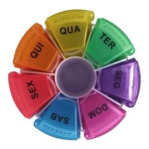 PORTA COMPRIMIIDOS BIC Com o novo Porta Comprimiidos ficou muito mais fácil organizar seus medicameentos e vitaminas no dia-a-dia. São 7 bandejas portáteis dentro da caixa de cápsulaas, uma para cada dia da semana, além de um design moderno e colorido. Auxiliar a lembrar de tomar os medicameentos e vitaminas.VANTAGENS E BENEFÍCIOS:Auxiliar na organização de medicameentos e vitaminas;Material resistente e colorido;7 bandejas, uma para cada dia da semana.ESPECIFICAÇÕES TÉCNICASPorta Comprimiidos - BIC Bem EstarModelo: PR0101Material: Material Plástico Copoliéster (Tritan) de alta durabilidadeTamanho do Produto: 9,5 x 8,5Tamanho da Embalagem: 10,5 x 9Peso: 190gCor: Branco, azul, rosa, roxo, verde, amarelo, laranja, vermelhoLimpe com esponja ou pano não abrasivo.Recomendações: Transporte em segurança, evite quedas ou batidas.Feche bem o compartimento para garantir um fechamento seguro.