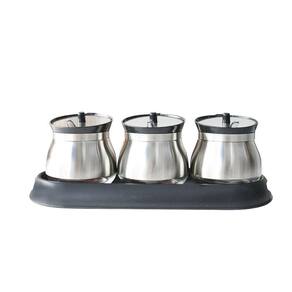 PORTA CONDIMENTO DE INOX COM 3 POTES E SUPORTE DE PLASTICO - TRC8505.