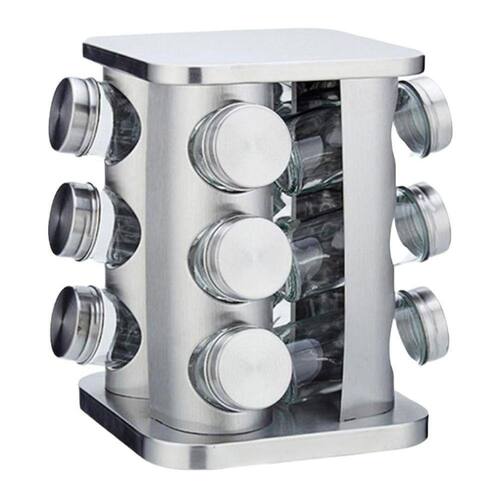 Porta Condimento Tempero Inox 12 Potes Vidro Giratório
