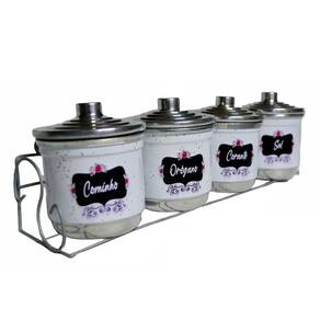 Porta Condimento Tempero Organizador 4 Potes Alumínio Branco
