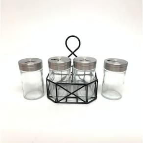 Porta Condimentos 4 Peças c/ Suporte Luxo Descubra a combinação perfeita de estilo e funcionalidade com nosso Porta Condimentos com Suporte Luxo e 4 Peças. Ideal para qualquer ambiente, desde a cozinha até a mesa de jantar, este conjunto traz um toque de sofisticação e organização, facilitando o acesso aos seus temperos favoritos.