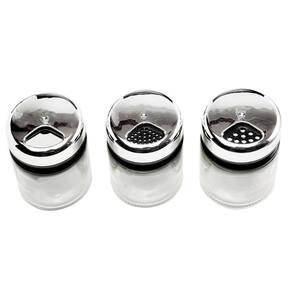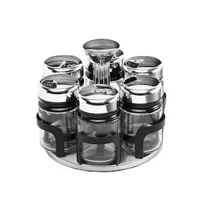 O Porta Condimentos é perfeito para organizar temperos e ervas. Contém 6 potes com 100ml cada e tampa emborrachada, suporte giratório em aço inox. Seu corpo transparente em vidro facilita a visualização do conteúdo de cada recipiente, possui três tipos de abertura para despejo auxiliando sua vida na cozinha.