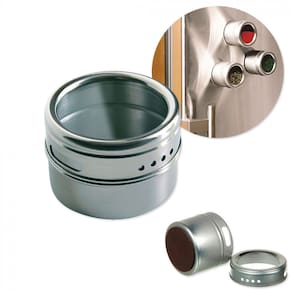 Porta Condimentos Magnético 4 Peças Aço Inox Spice Rack Muito mais praticidade na hora de cozinhar, além de deixar sua cozinha muito mais bonita. Com o Jogo de Porta Condimentos você pode guardar 3 tipos de temperos diferentes, não é preciso abrir a tampa superior, pois ele possui cavidades nas laterais onde você pode controlar a quantidade de tempero a ser colocada no preparo da refeição. Os Potes tem na base ímã. Podem ser fixados em geladeiras, freezers, fornos e micro-Ondas,aço inoxidável escovado, imã e suporte metálico Não deixa cheiro nem gosto o Visor de acrílico possui Cavidades diferenciadas para permitir a saída do tempero. Completamente desmontável para limpeza. Vedação completa sem vazamentos. Lavável na lava-Louças.