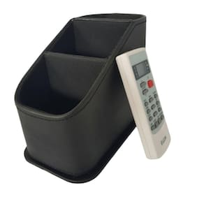 Material: Couro Ecológico;Altura Parte Mais Alta: 15.50cmAltura parte Mais Baixa: 8.50cmLargura: 10cmProfundidade: 14cm e 7.50cmCor: Preto ;Peso: 346grCONTEÚDO DA EMBALAGEM: 1 PORTA CONTROLES PRETO EM COURO ECOLÓGICO.