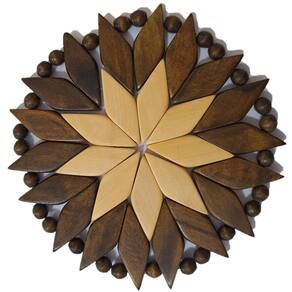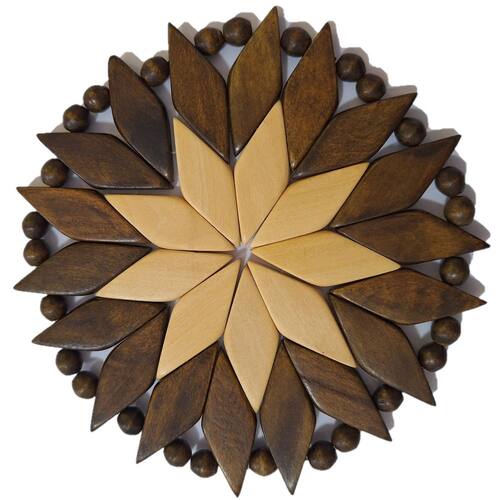 Porta Copos (descanso) Artesanal Redondo Marrom-Marfim confeccionado em madeira, composto por peças pintadas e envernizadas, em cores diversas, em formato de losângulo, com acabamento nas bordas.
