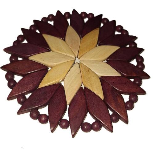 Porta Copos (descanso) Artesanal Redondo Roxo-Marfim confeccionado em madeira, composto por peças pintadas e envernizadas, em duas cores, em formato de losângulo, com acabamento nas bordas.