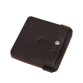 Estrutura do corpo: Construção em couro de espessura média e toque macio. Logomarca em relevo. Dimensões: 9,5 x 9,5 cm largura x altura Haste com fechamento em botão para agrupar os porta-copos. Contém 6 unidades. Peso aproximado: 40 gramas Material: couro