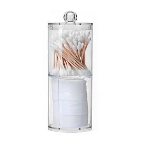 Porta Cotonete e Algodão Redondo Duplo em Acrílico Transparente Mantenha seus acessórios de maquiagem organizados com o Porta Cotonete e Algodão Disco Redondo em Acrílico para Organização. Este produto elegante e prático é perfeito para manter sua bancada de banheiro organizada e seus cotonetes e discos de algodão ao alcance das mãos enquanto você se maquia.