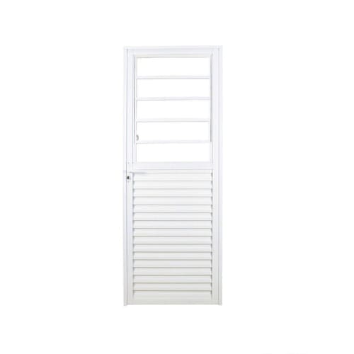 A Porta de Alumínio MGM possui um design diferenciado e que proporciona maior segurança devido aos perfis empregados em sua concepção. Pode ser confeccionado com perfis de alumínio ou de forma mista, empregando também vidros em sua estrutura. Utiliza fechadura broca 21 externa e dobradiças reforçadas com bucha de nylon. Esses produtos agregam robustez e beleza. Seu sistema de dobradiça suportam pesos elevados, o que propicia a aplicação de vidros de até 4 mm. Vidro: Liso Ambientes Recomendados: Externo;Interno Acabamento do Puxador: Polido Acompanha Batedor: Não Acompanha Batente: Sim Acompanha Dobradiça: 3 Acompanha Fechadura: Sim Acompanha Guarnição: Não Acompanha Manual de Instalação: Sim Acompanha Puxador: 1 Acompanha Trinco: Não Altura: 210 cm Ambiente Principal: Cozinha codigo_ean: 7899970100543 Cor: Branco Cor do Batente: Branco Cor do Produto: Branco Cor Predominante: Branco Elétrica: Não Escala de Brilho: Brilhante Espessura: 3 cm Espessura do Vidro: 3 mm Itens Inclusos: Batente, Dobradiças, Fechadura, Folha Lado de abertura: Direita Largura: 80 cm Largura do Batente: 14 cm Manual de Montagem e Instalação: https://product-hub-prd.madeiramadeira.com.br/601574/documents/c8cb45e2-9770-4a53-9435-e0271e99bf6f575132manuais.aspx Material da Dobradiça: Alumínio Material do Batente: Alumínio Material do Puxador: Alumínio Material Principal: Alumínio Necessita Instalação: Não Necessita Montagem: Não Número de Folhas: 01 Origem do Produto: Nacional Peso: 13 kg Possui Grade: Não Possui Vidro: Sim Quantidade de Folhas: 01 Recomendações de Uso, Manutenção e Limpeza: Limpeza com água e sabão neutro. Tamanho: 210cm x 80cm Tamanho do Produto: 210cm x 80cm Textura da Porta: Veneziana Tipo de Dobradiça: Simples Tipo de Parede: Alvenaria;Drywall Tipo de Porta: Abrir Tipo de Puxador: Externo Tipo de Vidro: Liso Vidro incluso: Sim Ean: 7899970100543