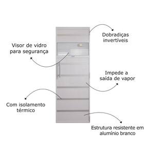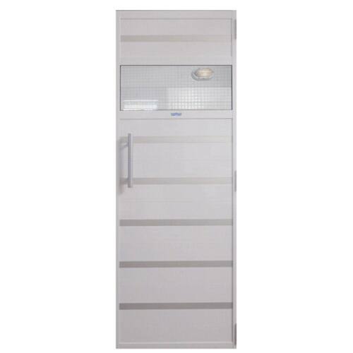 Além de impedir a saída de vapor e evitar a dissipação de calor para áreas externas, a Porta de Alumínio Branco 0,70x1,99 m para Sauna a Vapor Sodramar acompanha contramarco para instalação e está de acordo com todas as normas de segurança estabelecidas para ambientes de sauna úmida! Com isolamento térmico e dobradiças invertíveis que possibilitam a abertura da porta para a esquerda ou para a direita, conta com puxador e visor de vidro horizontal para segurança. Sua abertura é projetada para o lado externo da sauna e a porta é fabricada em alumínio branco, garantindo maior resistência e durabilidade ao produto.