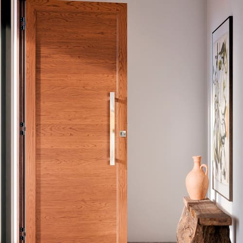 O puxador em alumínio de 60cm e as dobradiças reforçadas proporcionam leveza visual e uso seguro no dia a dia. Os lambris verticais agregam sofisticação, valorizando fachadas residenciais e projetos refinados. Com 6 anos de garantia, oferece qualidade, estética e desempenho em um único produto. Ambientes Recomendados: Interno Acabamento do Puxador: Polido Acompanha Batente: Sim Acompanha Dobradiça: 03 Acompanha Fechadura: Sim Acompanha Manual de Instalação: Sim Acompanha Puxador: 02 Acompanha Trinco: Sim Altura: 215 cm Ambiente Principal: Sala de Estar codigo_ean: 7898575477722 Cor: Marrom Cor do Batente: Marrom Cor do Produto: Amadeirado Cor do Produto: Marrom Elétrica: Não Escala de Brilho: Fosco Espessura: 8 cm Informações Complementares: Produto chega pronto para Instalação, consulte sempre o manual de instação antes de efetuar ao assentamento do produto. Isolamento Acústico: Não Itens Inclusos: 1 Porta, Manual de Montagem e Manual de Instalação Lado de abertura: Direita Largura: 95 cm Largura do Batente: 8 cm Linha ou Coleção: Lucasa Eccellente Manual de Montagem e Instalação: https://product-hub-prd.madeiramadeira.com.br/482225772/documents/fbb62001-015f-40e6-bd4b-61d76ddbfefb3305227287217618481970798.pdf Marca: Lucasa Material da Dobradiça: Alumínio Material do Batente: Alumínio Material do Puxador: Alumínio Material Principal: Alumínio Medida do Vão: 82 Necessita Montagem: Sim Número de Folhas: 01 Origem do Produto: Nacional Peso: 23,92 kg Recomendações de Uso, Manutenção e Limpeza: Limpeza com água e sabão neutro Resistência à Água: Sim Tipo de Dobradiça: Simples Tipo de Parede: Alvenaria, Drywall Tipo de Porta: Abrir Tipo de Puxador: Externo Vidro incluso: Não