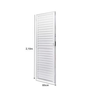 Porta de Giro Palheta 080x210x4,0 Produto Pronto para Instalação. Produtos Resistentes à Corrosão. Pintura de Acabamento na Cor Branco. Acompanha Fechadura. Garantia de 5 anos Dobradiças reforçadas de alumínio. Largura do Batente: 4 Acompanha Batente: Sim Acompanha Dobradiça: 03 Acompanha Fechadura: Sim Acompanha Guarnição: Não Acompanha Manual de Instalação: Sim Acompanha Puxador: Não Acompanha Trinco: Não Altura: 210 Ambiente Principal: Área de Serviço Cor do Batente: Branco Elétrica: Não Isolamento Acústico: Não Itens Inclusos: Fechadura Lado de abertura: Esquerda Largura: 80 Manual de Montagem e Instalação: https://cdn2.madeiramadeira.com.br/atributo/ramassol/1359353-manual-para-portas-giro-aluminio-1.pdf Material do Batente: Alumínio Necessita Montagem: Não Número de Folhas: 01 Origem do Produto: Nacional Peso: 8.539999999999999 Possui Grade: Não Tamanho: 210x80cm Tipo de Porta: Abrir Vidro incluso: Não