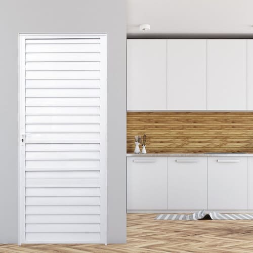 A Porta palheta com ventilação possui um ótimo custo-benefício, são indicadas para diversos ambientes tais como - banheiros, despensas e áreas de serviço. Tanto externo quanto interno. Possui um design sofisticado, as medidas são de 210 de altura por 86 de largura, com fechadura inclusa, produto de fácil instalação. Acompanha Batedor: Sim Acompanha Batente: Sim Acompanha Dobradiça: 03 Acompanha Fechadura: Sim Acompanha Guarnição: Não Acompanha Manual de Instalação: Sim Acompanha Puxador: Não Acompanha Trinco: Sim Altura: 210 cm Ambiente Principal: Banheiro Cor: Branco Cor do Batente: Branco Cor do Produto: Branco Cor Predominante: Branco Elétrica: Não Escala de Brilho: Brilhante Isolamento Acústico: Não Itens Inclusos: 1 Porta com Fechadura e Manual de Instalação Largura: 86 cm Largura do Batente: 3,8 cm Linha ou Coleção: Fortline Manual de Montagem e Instalação: https://product-hub-prd.madeiramadeira.com.br/924683/documents/ce68012d-cc2a-4740-92b1-71a6029e122f2156395434417214097995718.pdf Material da Dobradiça: Alumínio Material do Batente: Alumínio Material Principal: Alumínio Necessita Instalação: Não Origem do Produto: Nacional Peso: 7,58 kg Possui Grade: Não Possui Vidro: Não Recomendações de Uso, Manutenção e Limpeza: Usar água e sabão neutro na limpeza das esquadrias Textura da Porta: Veneziana Tipo de Dobradiça: Simples Tipo de Porta: Abrir Vidro incluso: Não
