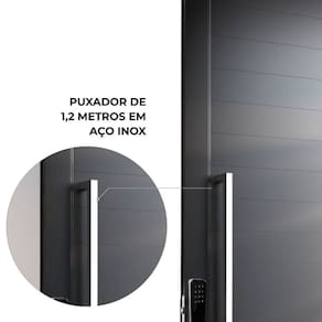 Equipada com fechadura digital Intelbras para maior segurança e praticidade, conta ainda com puxador de inox de 1,20 m e pivô em aço inox, que reforçam sua durabilidade e design moderno.