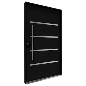 Porta de Alumínio Pivotante com Friso, Puxador de 1m e Fechadura Digital Intelbras