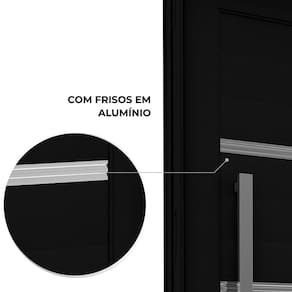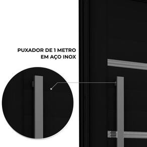 Os frisos em alumínio e o puxador de 1 metro em aço inox destacam o design moderno, enquanto o pivô em aço inox assegura robustez.