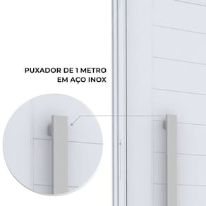 O puxador de 1 metro em aço inox destaca o design moderno, enquanto o pivô em aço inox assegura robustez.
