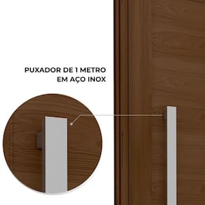 O puxador de 1 metro em aço inox destaca o design moderno, enquanto o pivô em aço inox assegura robustez.