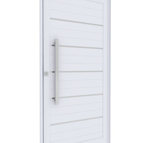 A Porta Pivotante de Alumínio Lambri com Friso e Puxador de 80 cm é uma solução moderna e sofisticada para quem deseja valorizar a entrada do imóvel com um produto de alto padrão.