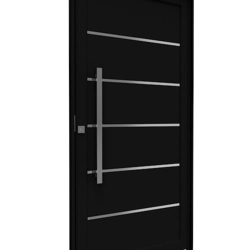 A Porta Pivotante de Alumínio Lambri com Friso e Puxador de 80 cm é uma solução moderna e sofisticada para quem deseja valorizar a entrada do imóvel com um produto de alto padrão.