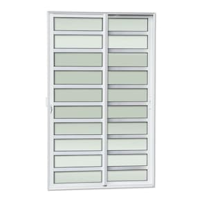 Porta de Correr 2 Folhas de Alumínio, Linha Elite, Pintura Eletrostática Branca, 2 Folhas Móveis, Vidro Liso Incolor 3mm, Travessas e Vidros Horizontais, Fechadura c/chave Tetra e Fecho automático para travamento das Folhas, Altura 210 Cm, Largura 120 Cm, Requadro 7,4 Cm, Garantia de 5 anos contra defeitos de fabricação. Ambientes Recomendados: Externo Acompanha Batente: Sim Acompanha Guarnição: Não Acompanha Manual de Instalação: Não Altura: 210 Ambiente Principal: Sala de Estar Cor: Branco Cor do Produto: Branco Cor do Vidro: Incolor Elétrica: Não Escala de Brilho: Brilhante Espessura: 7.4 Espessura do Vidro: 3 Isolamento Acústico: Não Itens Inclusos: 1 Porta de Correr montada, com vidros ,fechos e fechadura tetra Lado de abertura: Dupla Largura: 120 Largura do Batente: 7.4 Linha ou Coleção: Elite Manual de Montagem e Instalação: https://product-hub-prd.madeiramadeira.com.br/911446/documents/c384e2f5-49bc-4dc6-8824-e03729ecebb655manualesquadriasaluminio.pdf Necessita Montagem: Não Número de Folhas: 02 Origem do Produto: Nacional Peso: 43 Tamanho: 210cm x 120cm Tipo de Parede: Alvenaria Tipo de Porta: Correr Tipo de Vidro: Liso Incolor Vidro incluso: Sim