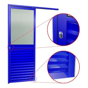 Porta de Correr Suspensa 210x100cm Meia Veneziana Meia Vidro Esq L.25 Azul