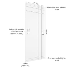 Folha de Porta Madeira Decorada 210x70cm Espessura 3,5cm -R40TPorta de Madeira Frisada tem o requadro em madeira de reflorestamento e reforço em madeira bilateral centralizado para colocação de fechadura. O enchimento é feito com colméia Honeycomb, produzido com papel semi-kraft com 160 folhas, o que confere maior resistência após a colagem da chapa de acabamento (Duratex).Modelo da Porta: GiroTipo de Madeira: MDFEscala de Brilho: Sem BrilhoLado de Abertura: Definido na instalaçãoTextura da Porta: FrisadaAcompanha Puxador: NãoOrigem do Produto: NacionalAmbiente Principal: InternoAcompanha Dobradiça: NãoQuantidade de Folhas: 1Preenchimento da Porta: ColmeiaComplexidade da Instalação: BaixaAcabamento: MelamínicoMaterial Principal Construção e Acabamento: MadeiraTonalidade: MarromCor Predominante: MarromTamanho do Produto: 210cm x 70cmElétrica: NãoPossui Friso: SimPossui Grade: NãoPossui Vidro: NãoAcompanha Trinco: NãoImune à Corrosão: NãoAcompanha Batedor: NãoAcompanha Batente: NãoAcompanha Fechadura: NãoAcompanha Guarnição: NãoNecessita Instalação: NãoAcompanha Olho Mágico: NãoResistência à Maresia: NãoResistência à Umidade: NãoAcompanha Ficha Técnica: SimPossui Isolamento Acústico: NãoAcompanha Manual de Instalação: SimMarca: Aqui MoveisItens Inclusos: FolhaLinha ou Coleção: MelamínicaMedida do Vão (A x L): 207cm x 72 cmPeso (kg): 13.21Altura (cm): 210Largura (cm): 70Espessura (cm): 3.5Informações Complementares: Folha de Porta, Produto não acompanha Batente, fechadura, dobradiças e guarnição.