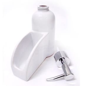 Um produto multiuso pode ser um porta detergente e esponja ou um dispenser para sabonete líquido. Fabricado em porcelana branca com acabamento brilhante. Sua tampa possuí bico móvel que gira 360 graus. O modelo Luna tem Design elegante estilo retro. Cor branca e tampa e bico cromados. Material: - Dispenser: Porcelana; - Tampa e Bico: Plástico. Medidas: Altura 17,5cm / Largura 6cm / Comprimento 13,5cm. Capacidade: 300ml. Produto . CUIDADOS: - Lavar com água e sabão neutro antes de usar; - Não usar produtos abrasivos ou solventes para limpeza; - Ao manusear evite batidas ou quedas; - Mantenha longe do alcance de crianças e animais domésticos.