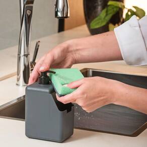 Possui espaço para guardar a esponja com saída de água, possui capacidade para 500ml de detergente com pump dosador na quantidade ideal, tornando a limpeza mais rápida e eficiente. Combine com os demais itens da linha single disponíveis em nossa loja.